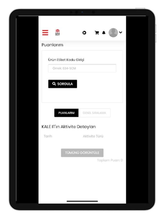 • As a result of the sales of Kale cylinder group products, you will be able to earn points by entering the alphanumeric codes on the application screen, which you will obtain by scraping the special area on the labels on the product.