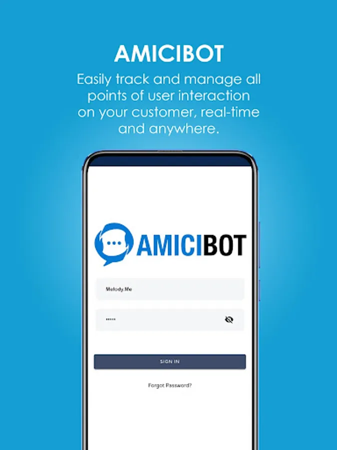 Amici mobile goes where you go to make sure your business process is maintained and smooth flowing. Whether you’re answering a customer concern, following up on customer feedback or addressing a newly sent proposal, Amicibot mobile lets you track, speed up and manage all points of interaction in real-time.