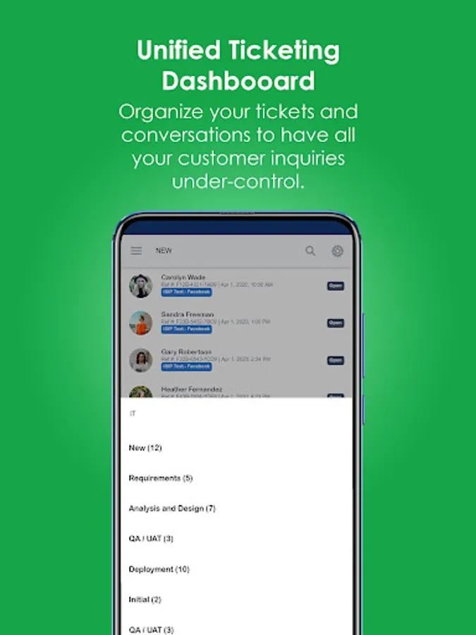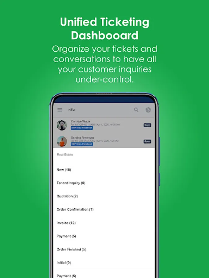 Automated Customer Management helps you track, manage and prioritize customer conversations on Facebook Messenger, Instagram, Viber, SMS, and Email. This is also a great mobile app to organize customer tickets in one place using the Unified Ticketing Dashboard.