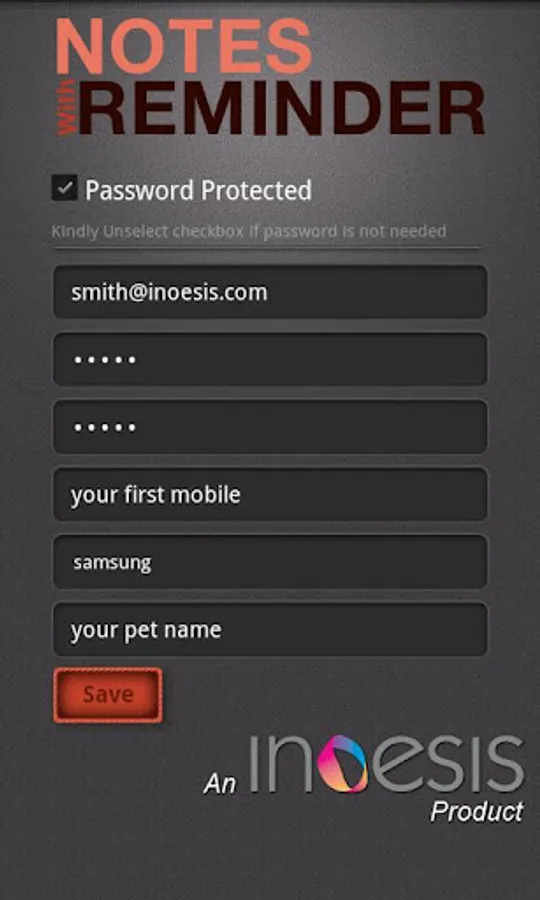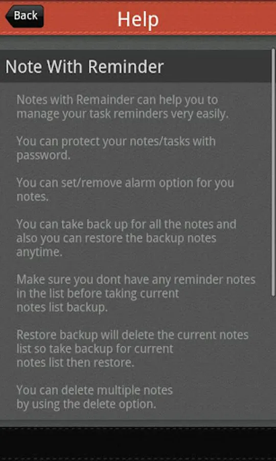 * You can protect your notes/tasks with password. You can set/remove alarm option for your notes.
