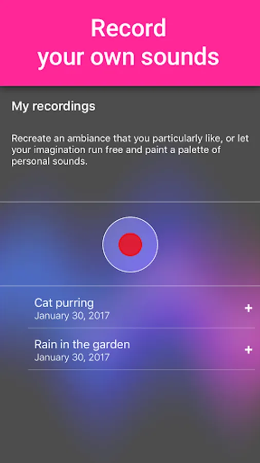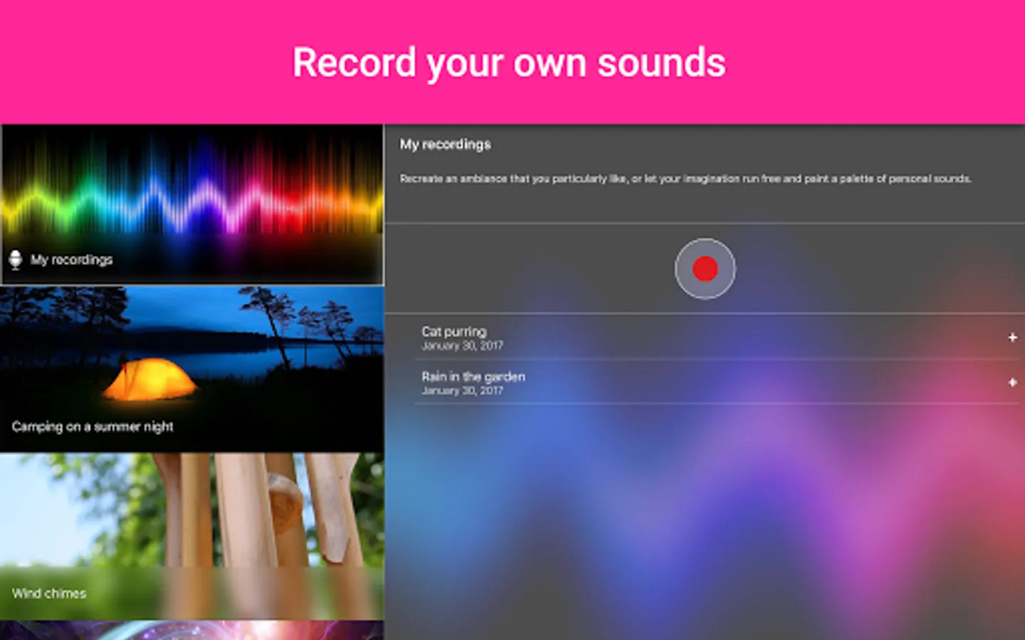 • Collect and mix more than 130 carefully handpicked ambient sounds and relaxing melodies.