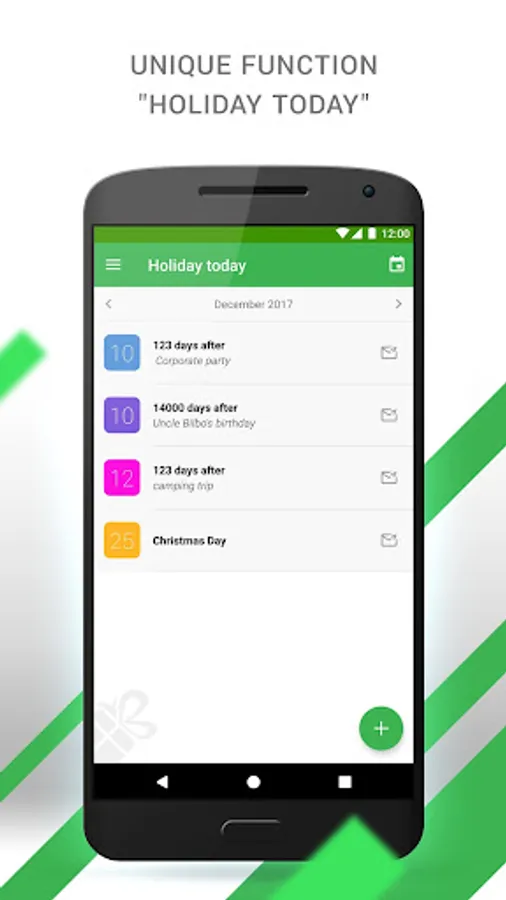 The feature of the application is in the unique function "I want a holiday", which allows you to please yourself with unusual anniversaries. The holiday will never be superfluous! So why not to celebrate 100 days of housewarming, 123 days of purchasing a new car and 333 days from the moment of awarding the academic title. Every day can be a reason for joy.