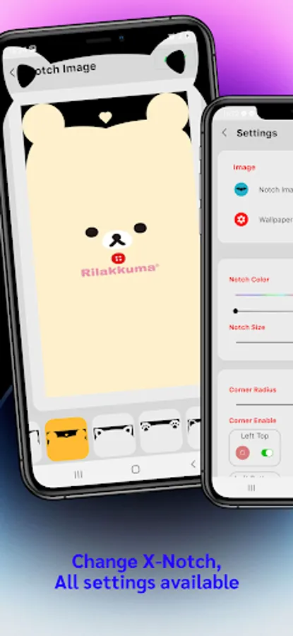 The applicatiom is simple app have settings which allow you add a notch easy same with Phone X or cute Notch and wallpaper.
