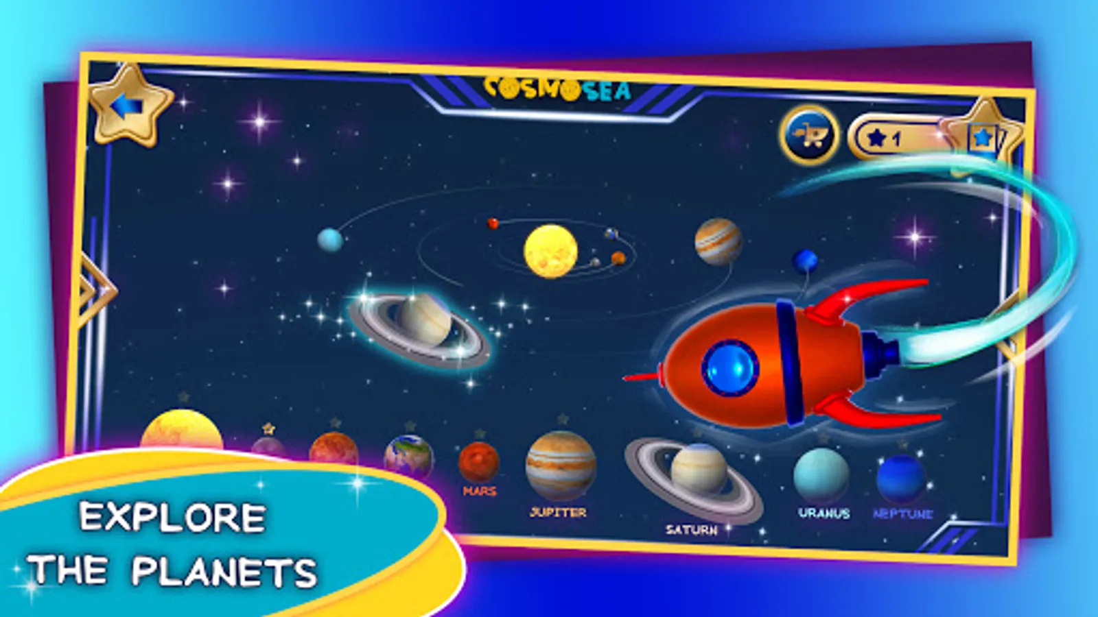 🌎CosmoSea is an educational game about space for 4 year olds, which is perfect for preschool learning. The starry sky, Solar system scope and constellations attract little discoverers with their mystery. The CosmoSea learning app will introduce your child to star space and the surrounding world in a playful and fun way through educational games.