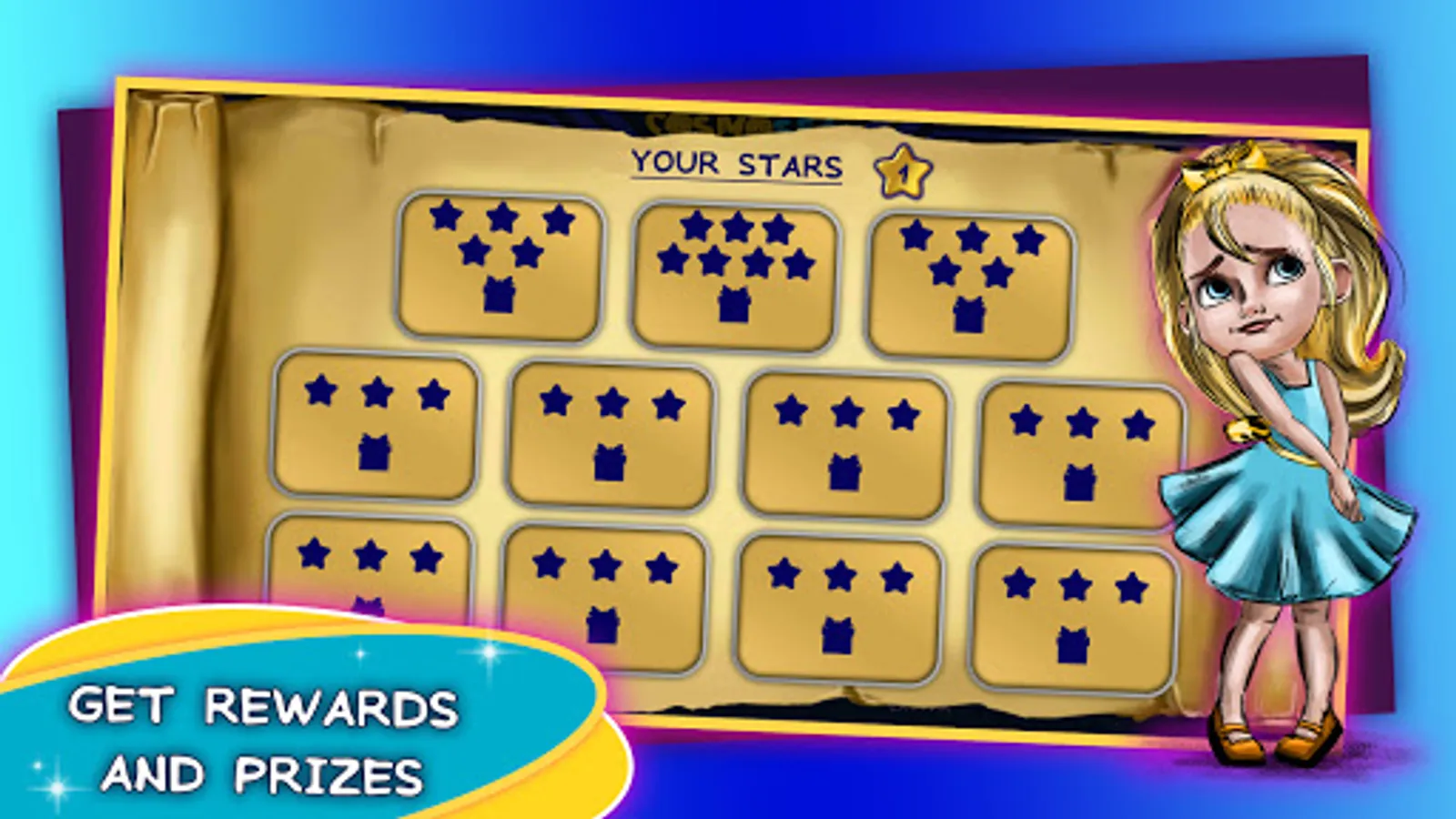 For each successfully completed task of the kids matching game, the child will receive a star reward, which later can be exchanged for surprise gifts.