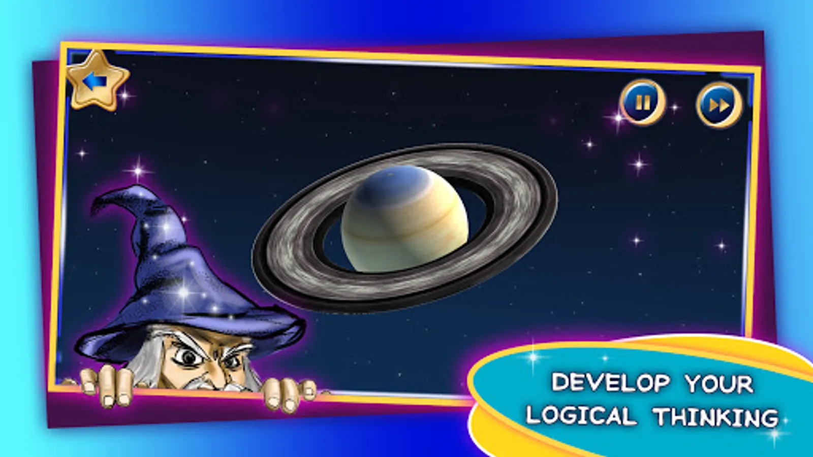 In the Planets section, the kid learning game will show the structure of the Solar system for kids. To find out interesting facts about the planets, the child needs to complete a mini-task that teaches him to analyze, compare, and generalize. Thus, preschool games introduce space for kids and develop their thinking.