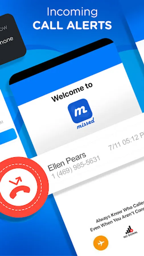 missed alerts you of the incoming calls when your phone is off or has no service. For example, if your phone is in airplane mode and three people call but don’t leave a voice mail then you will get alerts from missed for these calls when you connect back to your mobile operator’s network. Without missed you will never know who called!
