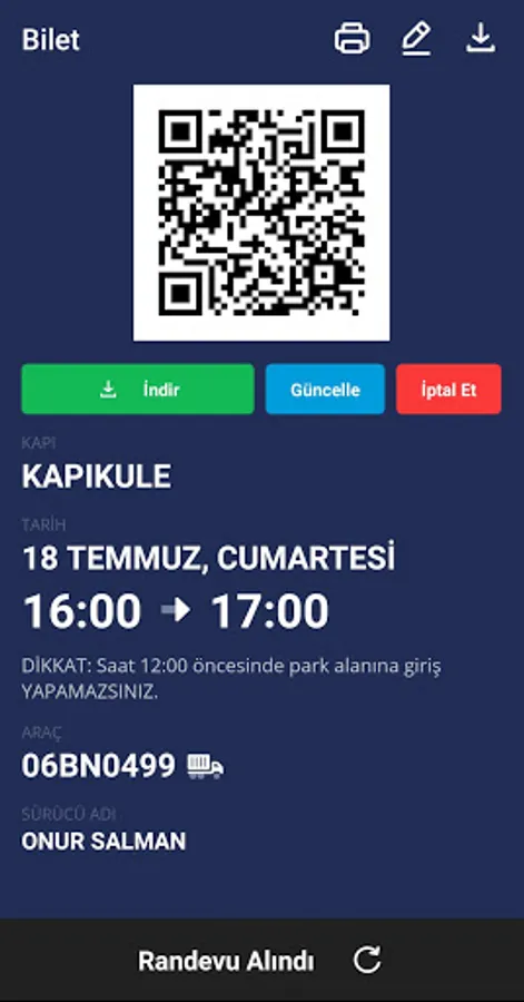 After completing your customs procedures with RSS Mobile, you can make an appointment for arrival at the border gate where you will exit, and you can adjust your driving plans according to this appointment time. If you encounter an unexpected situation while driving, you can cancel your appointment or change the time. You can also use the web application at https://rss.ticaret.gov.tr over the internet to access the Appointment Virtual Queue System.