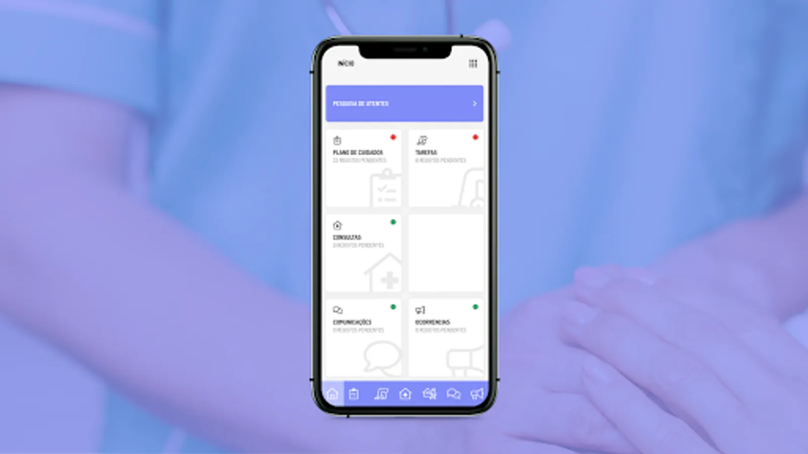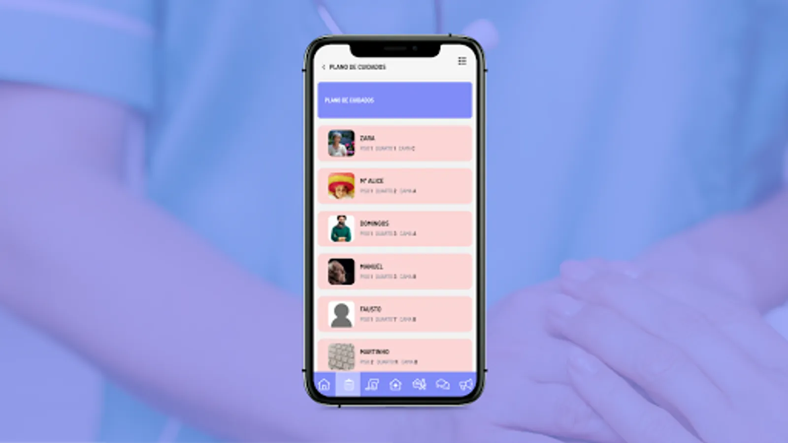 The mobile application allows the professional to have access to the care plan previously planned in BackOffice by the nursing team or technical management. This way, you can, on the spot, check and validate everything you have to do on the shift, and you can also add unplanned tasks and send / receive notices.