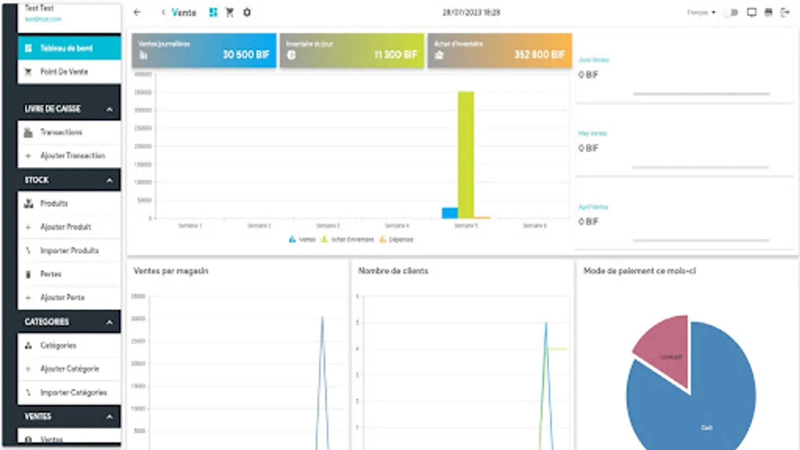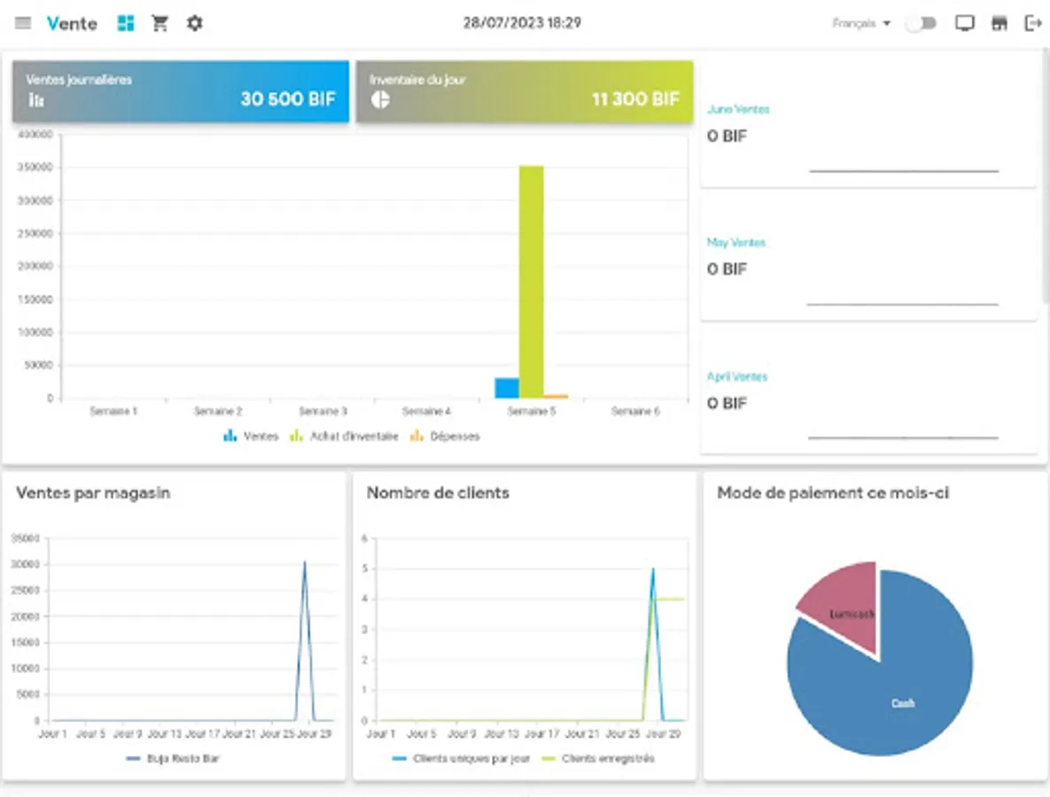 Vente POS helps you to know what's happening at every stage of your business through reports on sales, inventory, receivables, payments, purchases, and more.