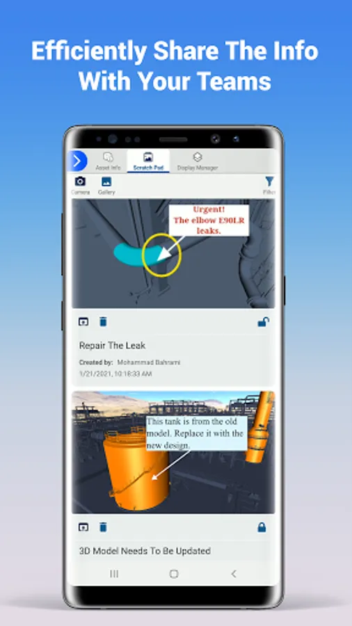 You can create and annotate โScratch Padโ pages of any 3D view to communicate field observations.