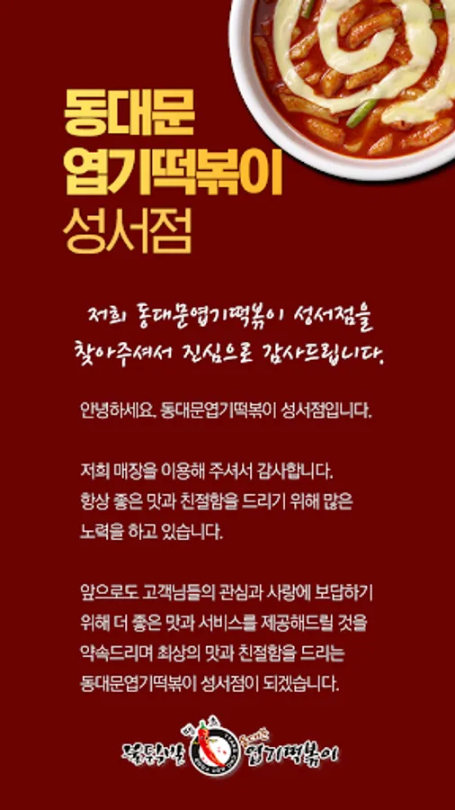 We will be the Dongdaemun-jiokgyeok tteokbokki bible school which gives the best taste and kindness.