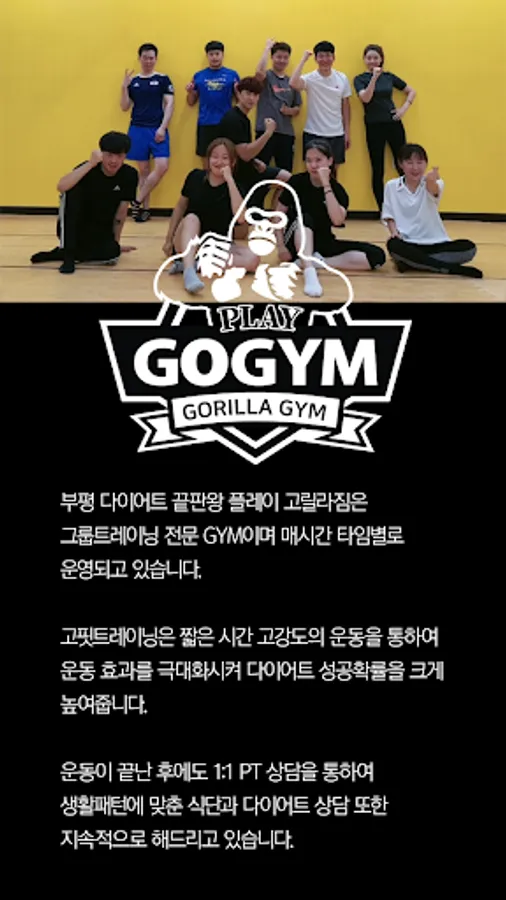 Bupyeong Diet End Plate Play Gorillazim is a group training specialist GYM and is operated hourly.