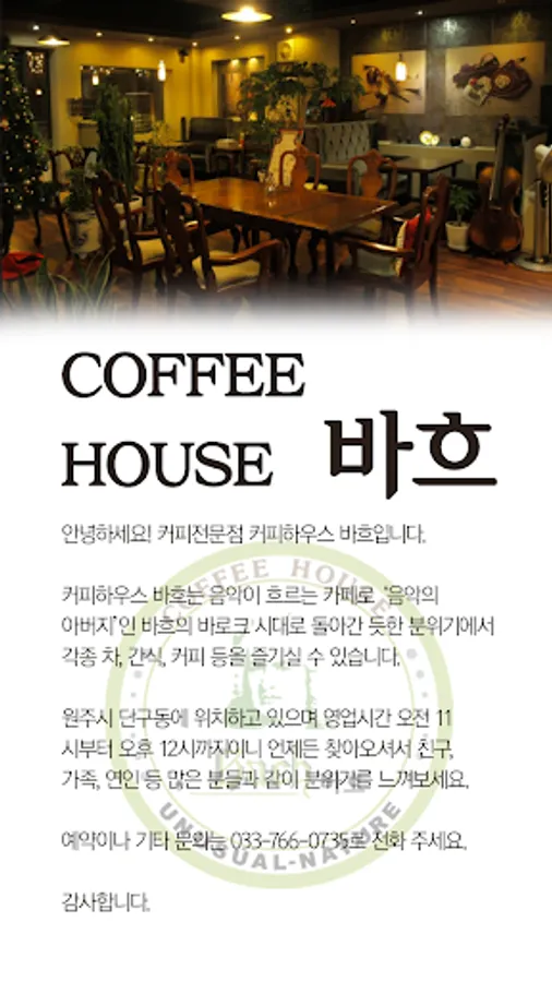 It is located in Dangu-dong, Wonju-si, and it is open from 11am to 12pm, so please feel free to come and feel the atmosphere with friends, family, and lovers.