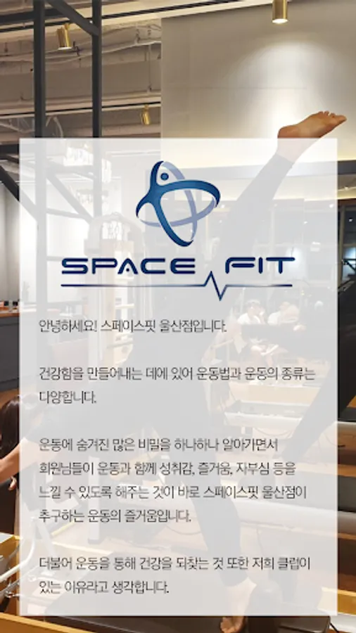 It is the joy of the movement that Spacefit Ulsan pursues, letting each member know a lot of secrets hidden in the exercise and let them feel accomplishment, pleasure and pride together with the exercise.