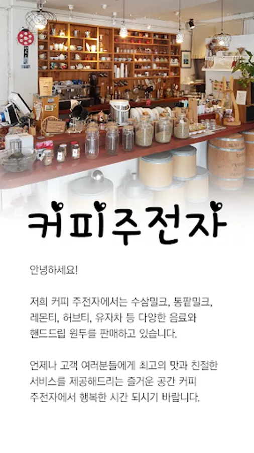 Our coffee kettle sells a variety of drinks and hand drip beans, including fresh ginseng milk, red bean milk, lemon tea, herbal tea and citron tea.