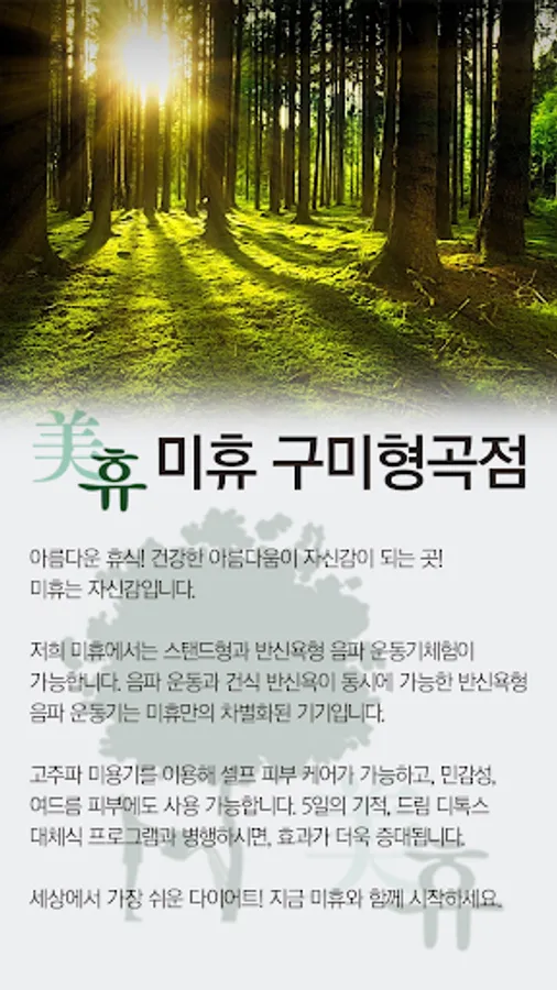 We are able to experience stand-type and half body type sonic exercise equipment. Half body type sonic exercise equipment that can do sonic exercise and dry half body bath at the same time is a unique device.