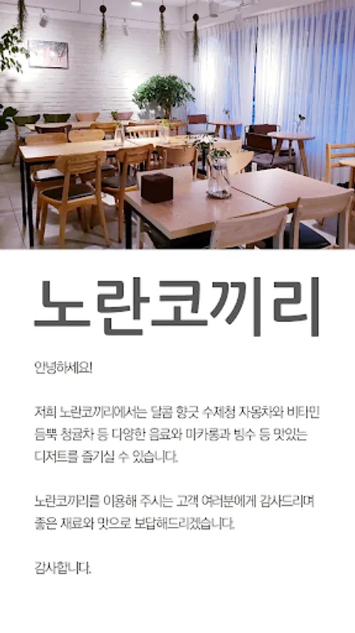 In our yellow elephant, you can enjoy a variety of drinks such as sweet-scented homemade blue grapefruit tea and vitamin-rich green tea, and delicious desserts such as macarons and bingsu.