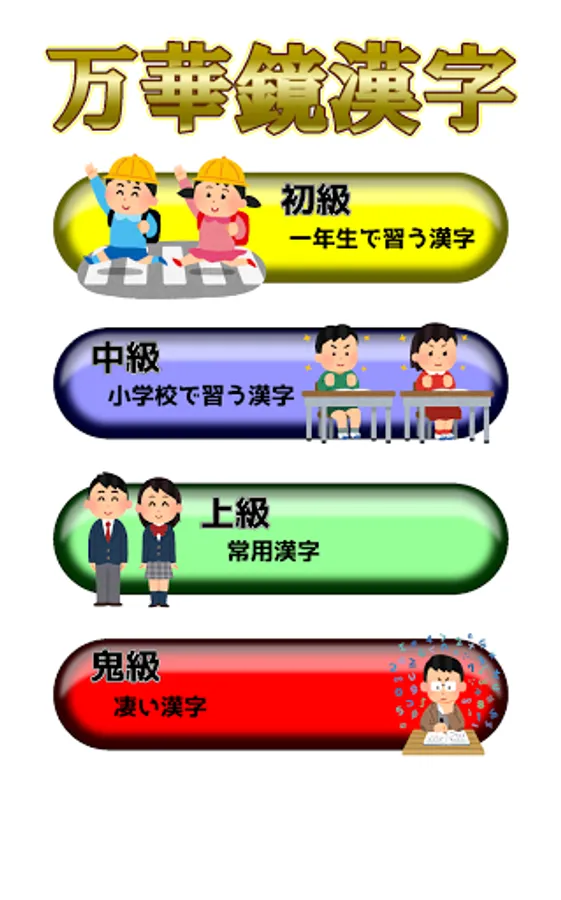 Since one kanji is processed and displayed in multiple layers like a kaleidoscope, it is a quiz-style game to identify the original kanji.