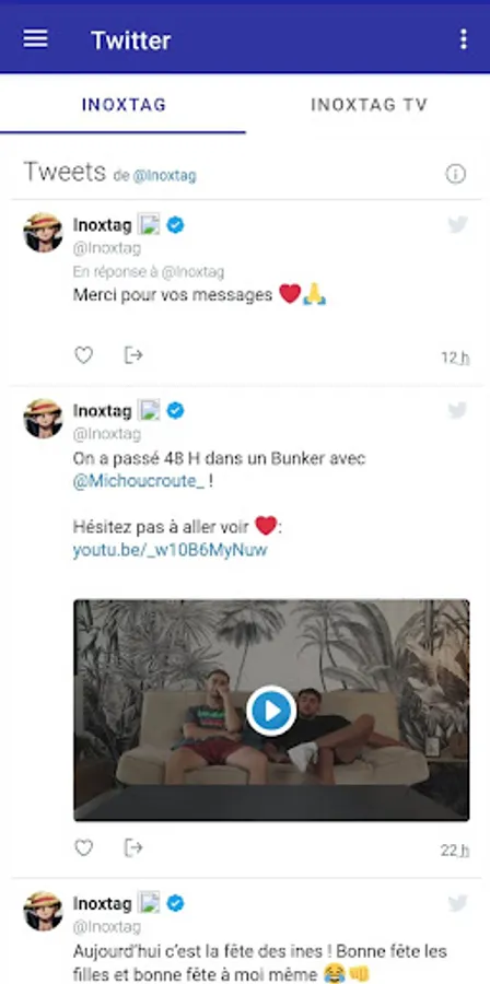 Inoxtag Zone brings together all Inoxtag publications (Youtube, Twitter, Twitch, Instagram, Music, etc.)