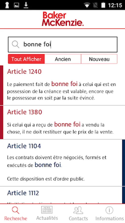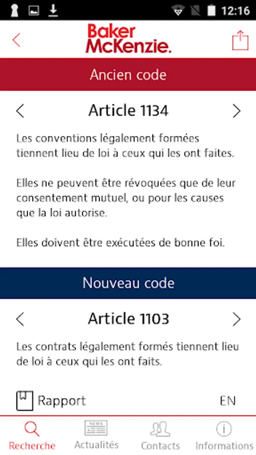 Ainsi, avec Baker McKenzie Réforme Contrats 2016, vous pouvez facilement trouver la concordance entre les anciens et les nouveaux articles concernés du Code Civil français. Vous pouvez de plus, si vous souhaitez contextualiser et approfondir les changements apportés par la réforme, consulter les sections pertinentes du rapport au Président de la République publié le même jour (JORF du 11 février 2016).