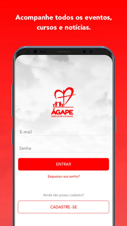 With the Ágape app you can follow the entire schedule of events and courses, news and the church's agenda, in addition to sharing and receiving prayers, organizing solidarity actions, attending live services, making donations and much more!