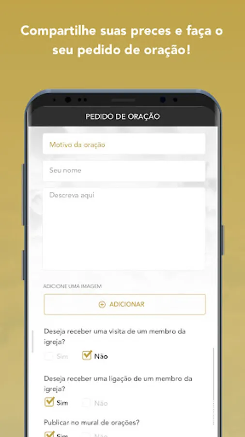 With the AD Djalma app you can follow the entire schedule of events and courses, news and church agenda, in addition to sharing and receiving prayers, organizing solidarity actions, attending live services, making donations and much more!