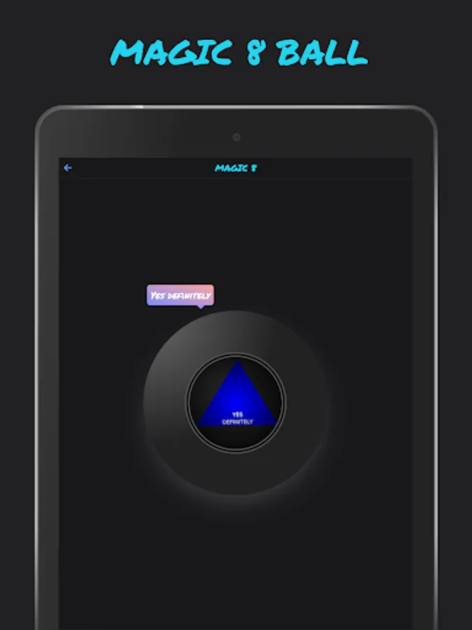 ✨ Magic 8 ball 🎱 for random answers to exciting general, closed questions. Unique feature if you don't want to make your own choice 🤔