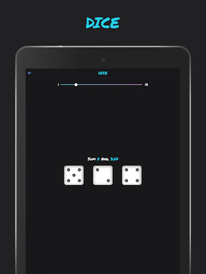 Board game lovers will find it useful to roll dice, you can throw up to 12 pieces at the same time, the application will calculate the sum and the average value.