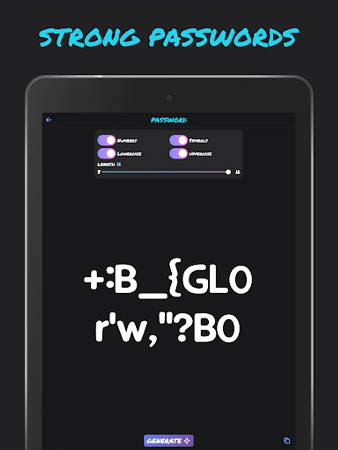 ✨ Random password generator 🔐 up to 64 characters including upper and lower case characters, special characters and numbers for maximum credential security, crypto safe passwords