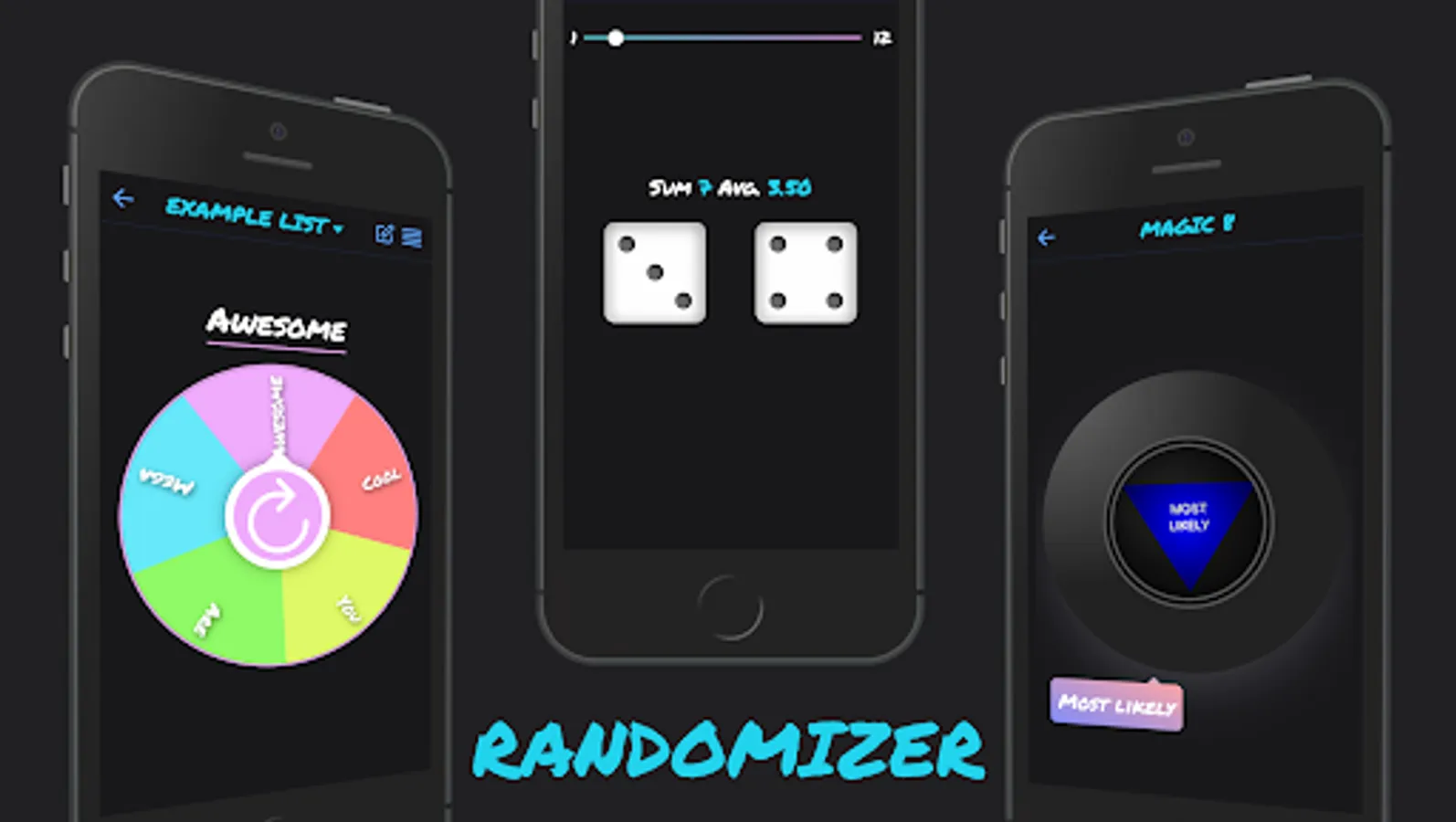 Wide featured's randomizer - Random Number Generator, Random Password Generator, Random Dice Roll, List Pick, Wheel of fortune, Drawing of lots, Coin Toss, Random Color Generator, Magic 8 Ball.
