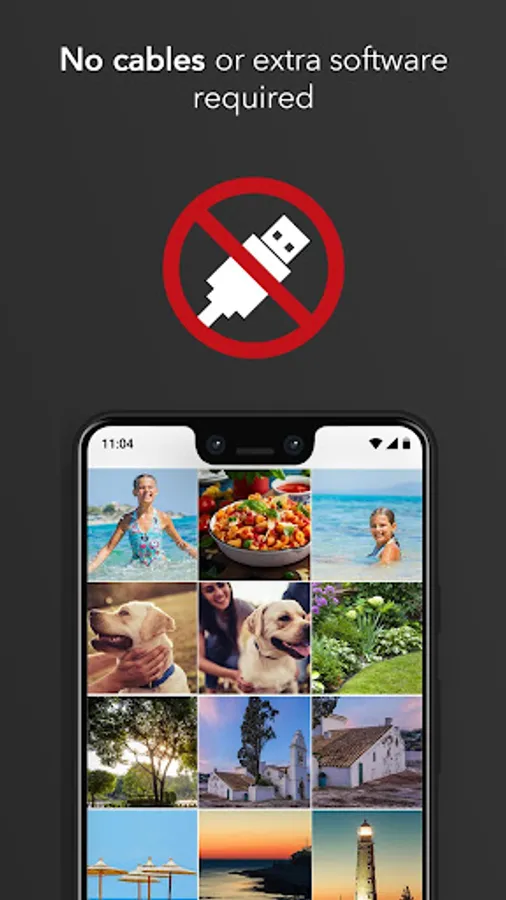 ► Your photos and videos are transferred directly from device to device using your local wifi network. They are not stored in an external server and they never leave your local wifi network keeping your photos safe