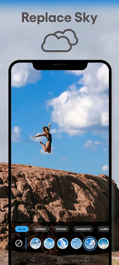 Discover the Sky editor - creative filters app! The app will allow you to remove the sky in the photo in a few seconds thanks to the AI and replace it with the sky filter of your choice thanks to the different filters and effects at your disposal.