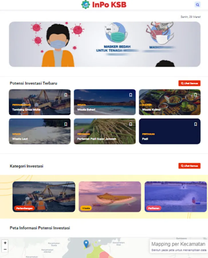 The Information System and Investment Potential of West Sumbawa Regency (InPo KSB) is an application for data collection and presentation of data related to investment potential in West Sumbawa Regency. This application was built by the Office of Investment and One Stop Services (DPMPTSP) West Sumbawa Regency, NTB.