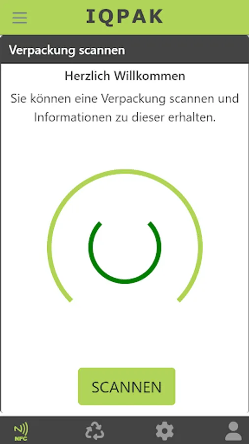 With this app it is possible to scan the NFC chip of an IQPAK packaging and get information about it.