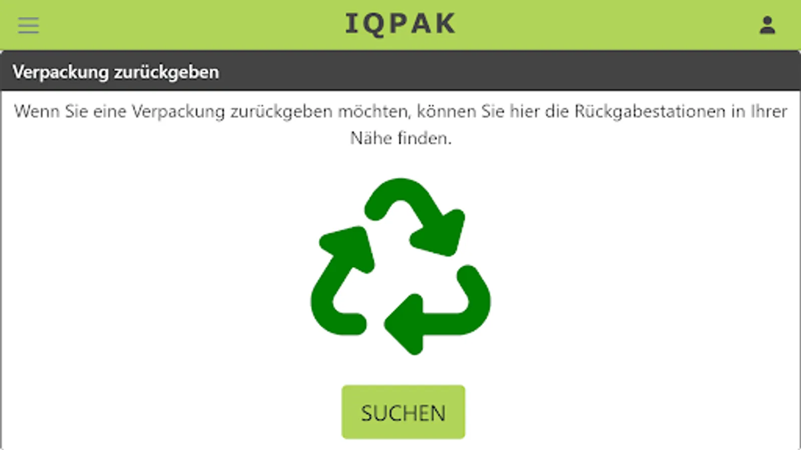 After scanning a package, the current deposit or the number of refills is displayed, for example. The return stations that are nearby can also be listed.