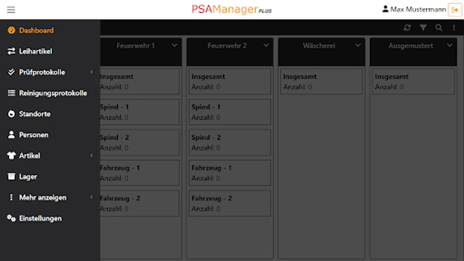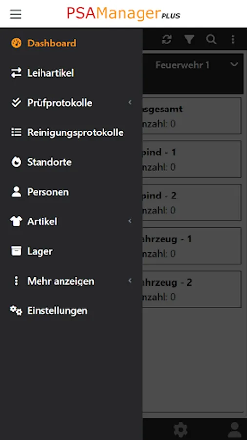 This app can be used to manage PPE (Personal Protective Equipment). In addition, other items can also be created that, similar to PSA, occur at certain locations (e.g. fire stations).