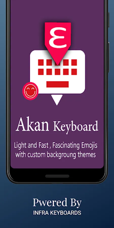 Akan Keyboard by Infra will allow you to type in your own native Akan ( Ghana ) Language and also in English text with the most attractive emojis