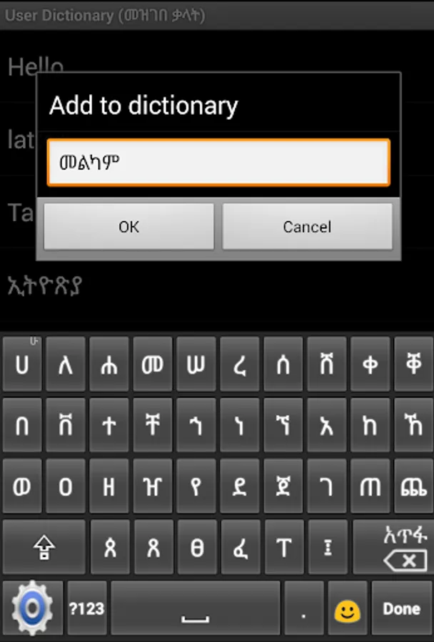 • Auto-Capitalization: This feature is for English keyboard users. Ethiopia alphabets are already capitalized.