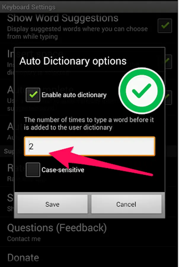 • User Dictionary: This will help you add/store the words (either manually or automatically added) to the user dictionary. An option is provided in the keyboard settings where you can set the number of times to type a word before it is added to the user dictionary. For example, you can set it to something like 2 or 3 …etc.