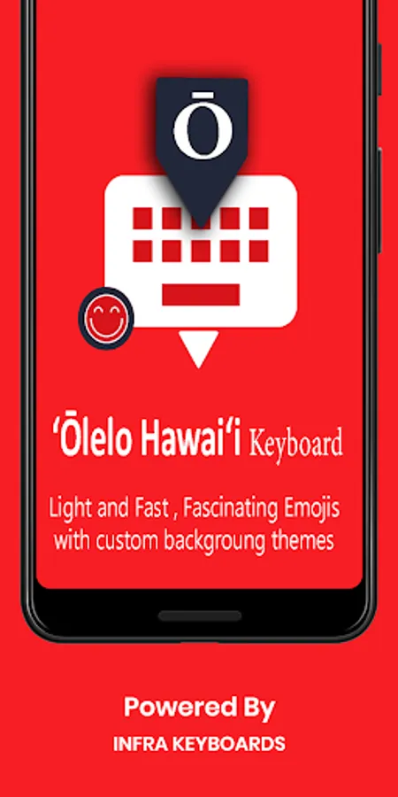 Hawaiian Latin by Infra Keyboard will allow you to type in your own native Hawaiian ( ʻŌlelo Hawaiʻi ) Language and also in English text with the most attractive emojis
