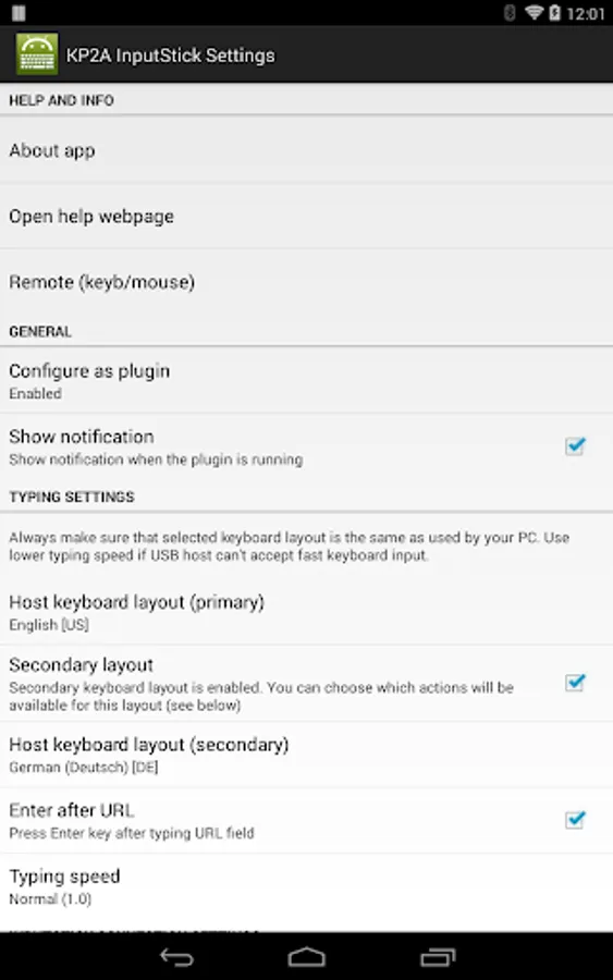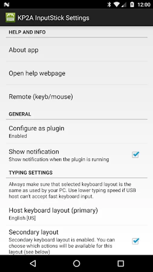 This application allows to send passwords (and all other data) stored in Keepass2Android app directly to your PC (as a USB keyboard input) using InputStick wireless receiver.