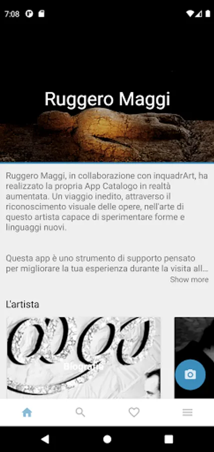 This app is a support tool designed to enhance your experience while visiting exhibitions. You can read the captions or listen to the audio guide by framing the photos through the camera icon at the bottom right.