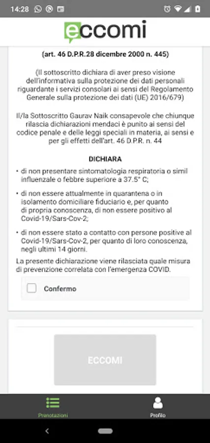 Warning! Eccomi is based on Bluetooth Low Energy technology, created to be particularly efficient in terms of energy saving, and does not use any type of geolocation data, including GPS data.