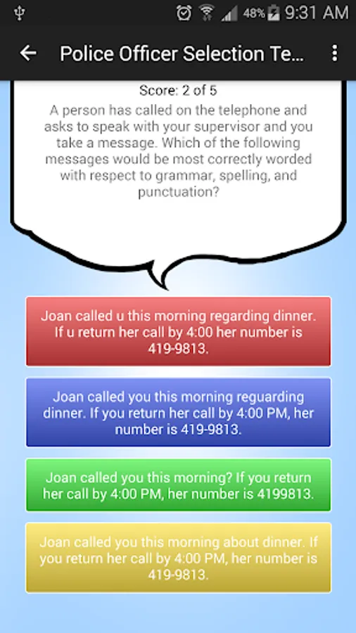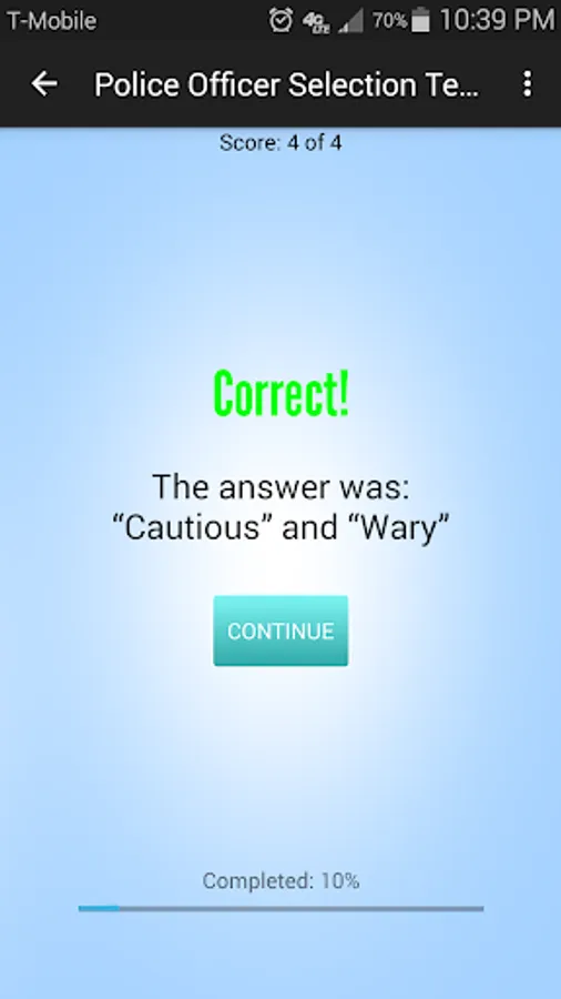 A straightforward app that helps you prepare for the Police Officer Selection Test. Clean and super intuitive user interface design. Focus on studying, not on how to use an app. No internet connection required. No need to carry heavy books or to print bulky note cards.