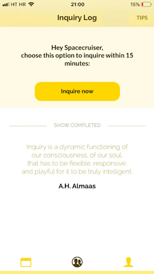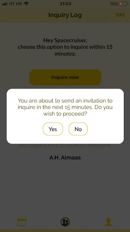 The Inq-Well app brings Ridhwan students from around the world together for either immediate or scheduled online inquiry sessions. Once students become Inq-Well users, they are able to make themselves available to inquire now, or in the near future. This availability is then made visible to all other students, and the app couples the user with the next available inquiry partner, before introducing both students on email and sharing contact details, to connect via Skype.