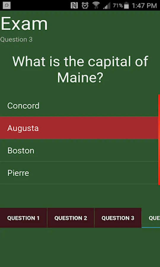 After creating the exam you can load it onto the app and your students can begin their exam. The app is easy to use and follow. Once the student has finished their exam their exam score is immediately displayed and the teacher can also record it in their grade book. There is also an Exam Summary that is created, which allows the student to only see the questions they got wrong as well as the answers they chose for those questions.