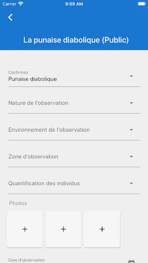 This version will be updated soon to allow you to participate in the monitoring of these invasive insects and / or pests