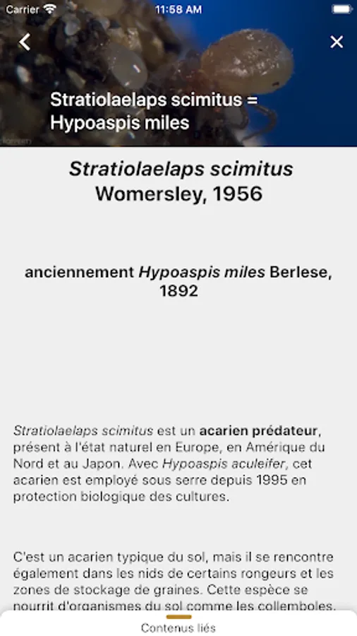 Thanks to it and its visual tools using a base of new photos, identify a pest (or its damage), an auxiliary, but also choose one or more relevant options of biocontrol according to a crop and / or a pest.