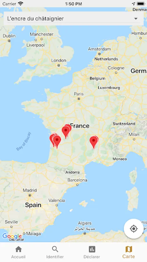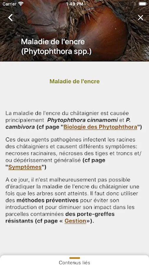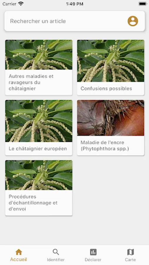 Welcome to Vigil'encre, an application dedicated to reporting the disease of chestnut ink, in orchards and forests, as part of a participatory science project. This disease is currently the main obstacle to chestnut cultivation in France and Europe. In the context of climate change, its impact is likely to increase. However, in order to better assess the risks involved, it is necessary to know precisely its current range.